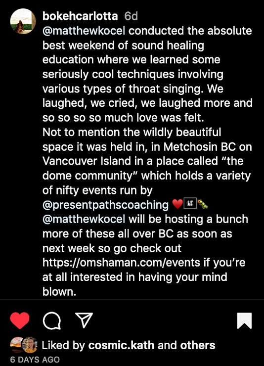 For inquiries, contact Matthew Kocel at 604-722-7211 or visit OmShaman.com.